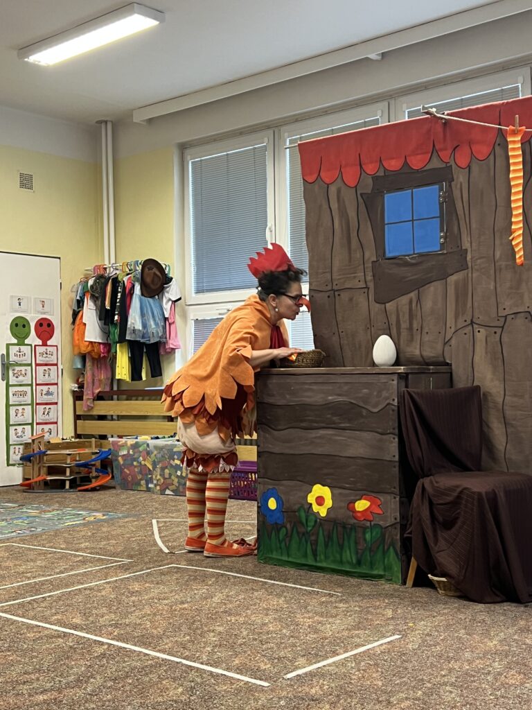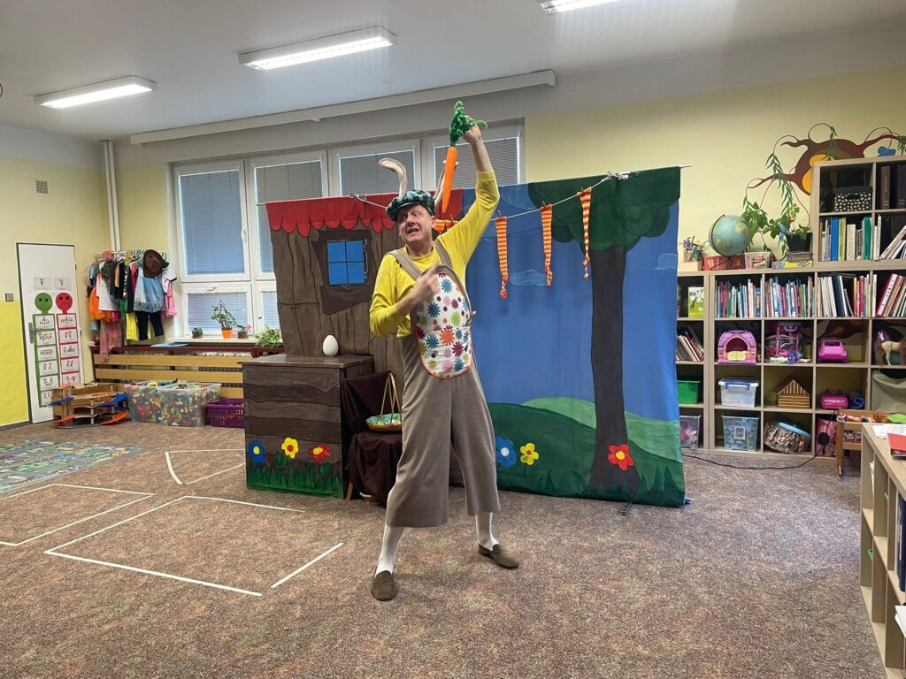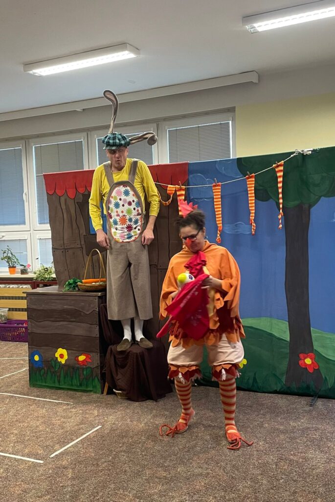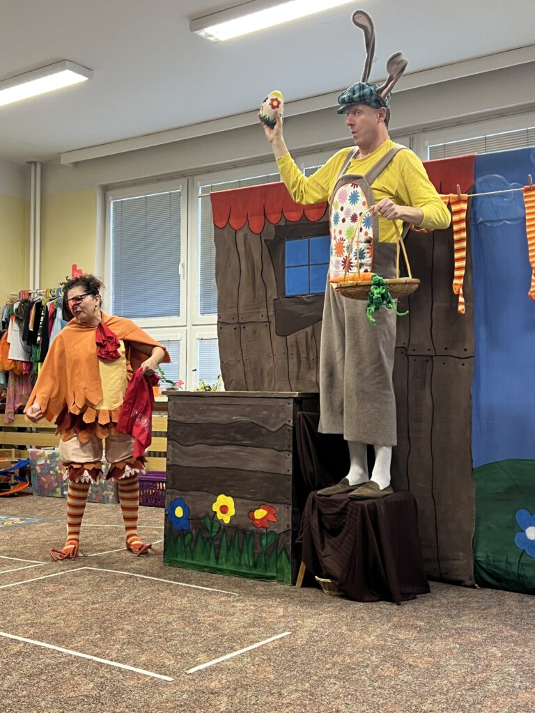 V pondělí 30.března 2026 se v mateřské škole konalo veselé divadelní představení s názvem „Velikonoční zajíček“. Příběh nás zavedl na dvorek ke slepičce, která snesla vajíčko a s láskou o něj pečovala. Její vajíčko však upoutalo pozornost velikonočního zajíčka, který si myslel, že by mu ho slepička mohla darovat jako výslužku. Aby ho získal, musel s pomocí dětí v publiku přednést velikonoční koledu. Slepička se vajíčka nechtěla vzdát a své vajíčko střežila. Mezi oběma hrdiny propuklo přetahování o vajíčko. V jednu chvíli se zdálo, že vajíčko prasklo vinou sporu. Nakonec se ukázalo, že pravý důvod byl mnohem kouzelnější – přišlo jaro, období nového života. Vajíčko prasklo proto, že se z něj vyklubalo malé žluté kuřátko.