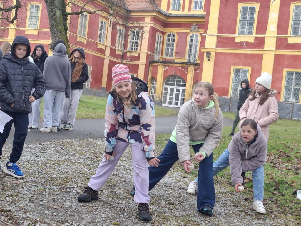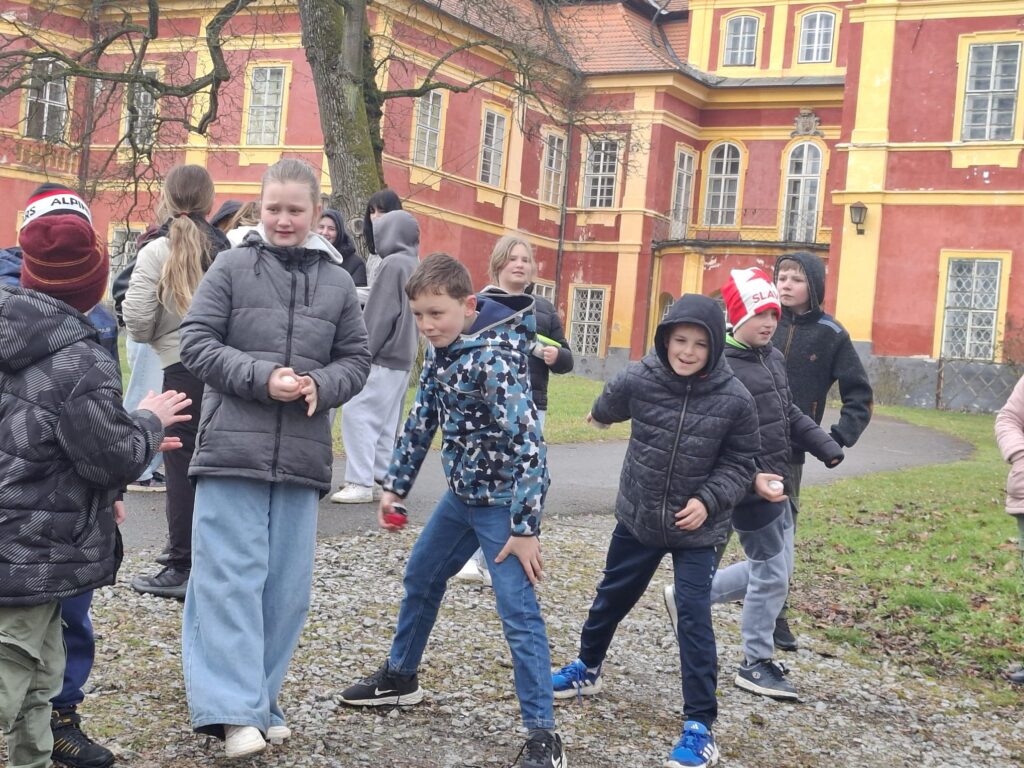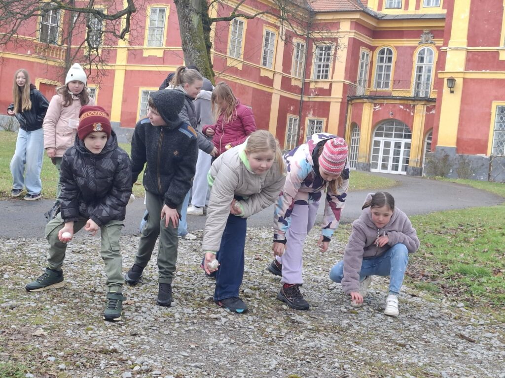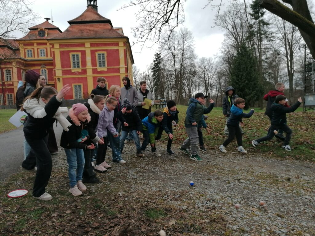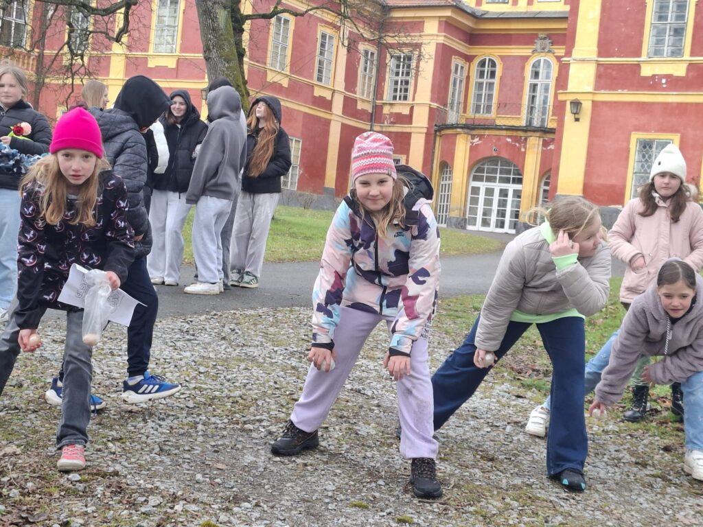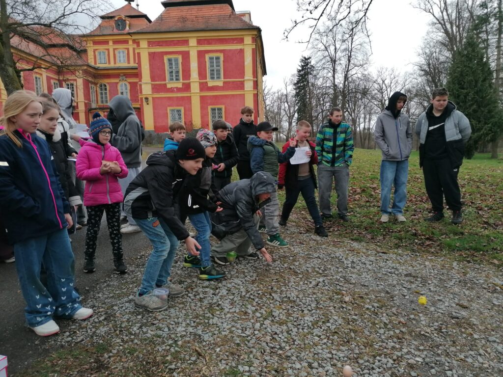 Žáci 9. třídy skupiny A si jako každý rok připravili zábavné úkoly pro své mladší spolužáky. V pondělí soutěžili nejstarší žáci 1. stupně páťáci a v úterý změřili své síly v angličtině třeťáci a čtvrťáci. Deváťáci si připravili 7 stanovišť, kde děti opakovaly probranou slovní zásobu a gramatiku (Feelings – He is/I am/It is…, Buildings – There is/There are.., Furniture – Rooms, Time, Clothes – I have got/She,He has got…, Animals, Numbers, English Alphabet, Food, EASTER). Ve skupinkách po 3 obcházeli stanoviště, plnili úkoly a získávali body. Na konci byly body všech skupin sečteny a byl vyhlášen vítězný tým, který si odnesl drobnou cenu a sladkosti. Nechybělo ani oblíbené „Egg rolling“- kutálení vajíček. Děti soutěžily v tom, které vajíčko se dokutálí nejdále. Na vítěze čekala sladká odměna. Deváťáci si tuto akci poctivě a pečlivě připravili a jejich mladší spolužáci z prvního stupně si to velmi užili. Děkuji jim za spolupráci a věřím, že společně ještě připravíme podobnou akci do konce školního roku.