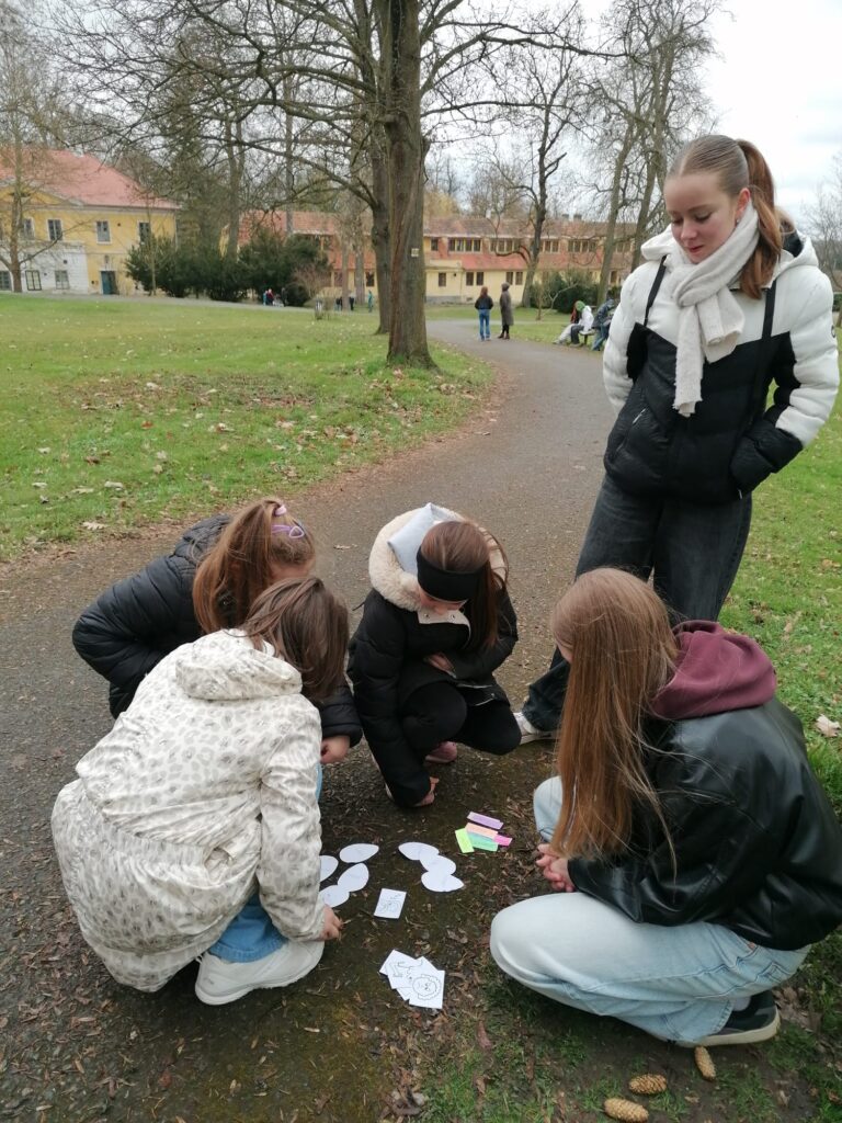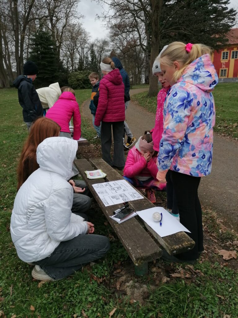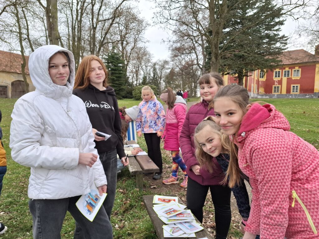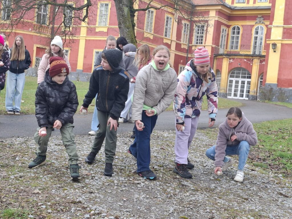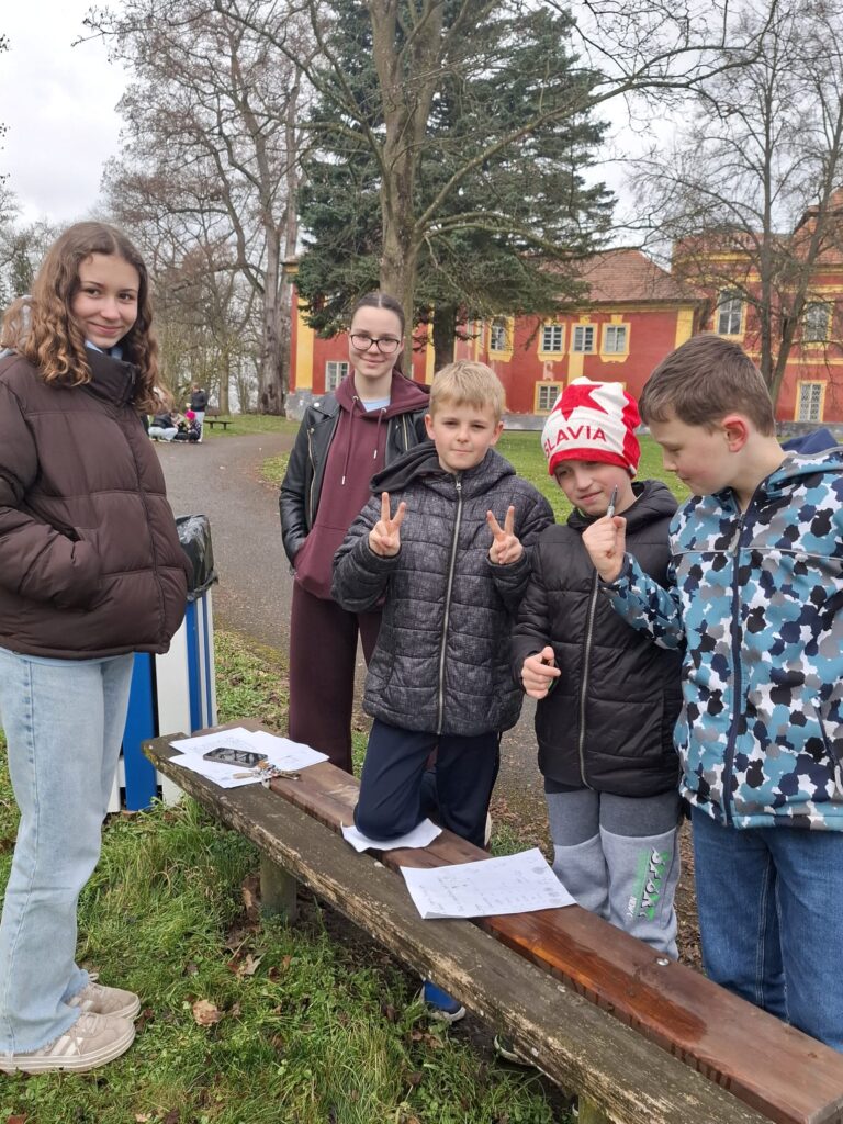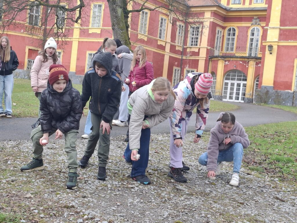 Žáci 9. třídy skupiny A si jako každý rok připravili zábavné úkoly pro své mladší spolužáky. V pondělí soutěžili nejstarší žáci 1. stupně páťáci a v úterý změřili své síly v angličtině třeťáci a čtvrťáci. Deváťáci si připravili 7 stanovišť, kde děti opakovaly probranou slovní zásobu a gramatiku (Feelings – He is/I am/It is…, Buildings – There is/There are.., Furniture – Rooms, Time, Clothes – I have got/She,He has got…, Animals, Numbers, English Alphabet, Food, EASTER). Ve skupinkách po 3 obcházeli stanoviště, plnili úkoly a získávali body. Na konci byly body všech skupin sečteny a byl vyhlášen vítězný tým, který si odnesl drobnou cenu a sladkosti. Nechybělo ani oblíbené „Egg rolling“- kutálení vajíček. Děti soutěžily v tom, které vajíčko se dokutálí nejdále. Na vítěze čekala sladká odměna. Deváťáci si tuto akci poctivě a pečlivě připravili a jejich mladší spolužáci z prvního stupně si to velmi užili. Děkuji jim za spolupráci a věřím, že společně ještě připravíme podobnou akci do konce školního roku.