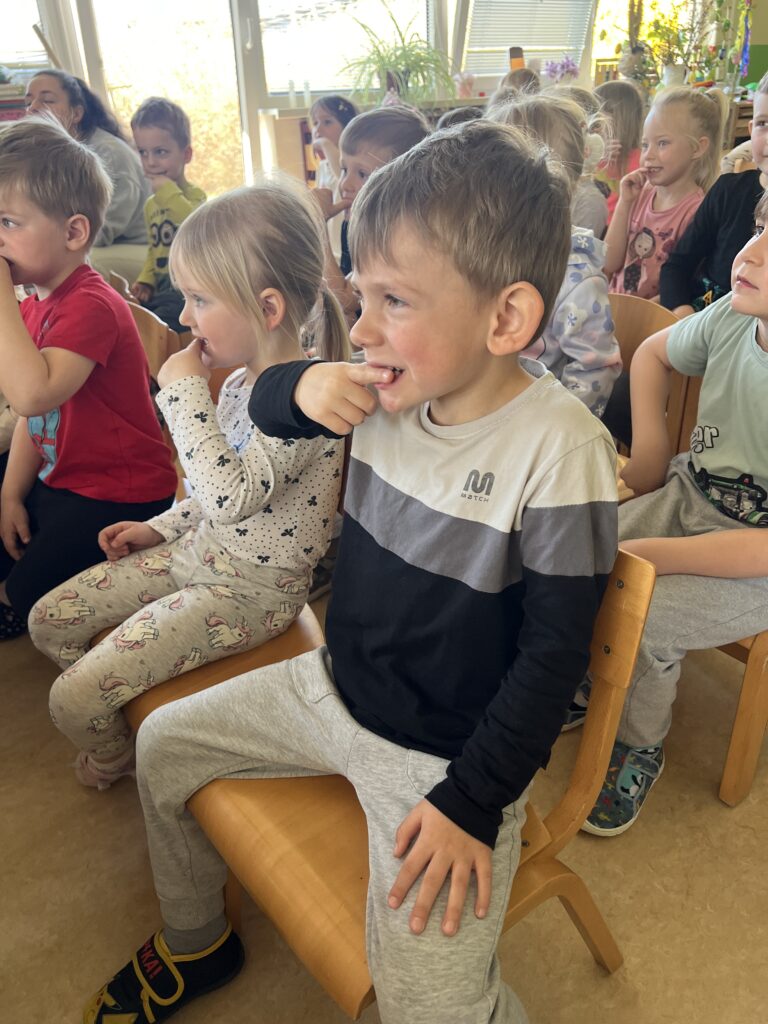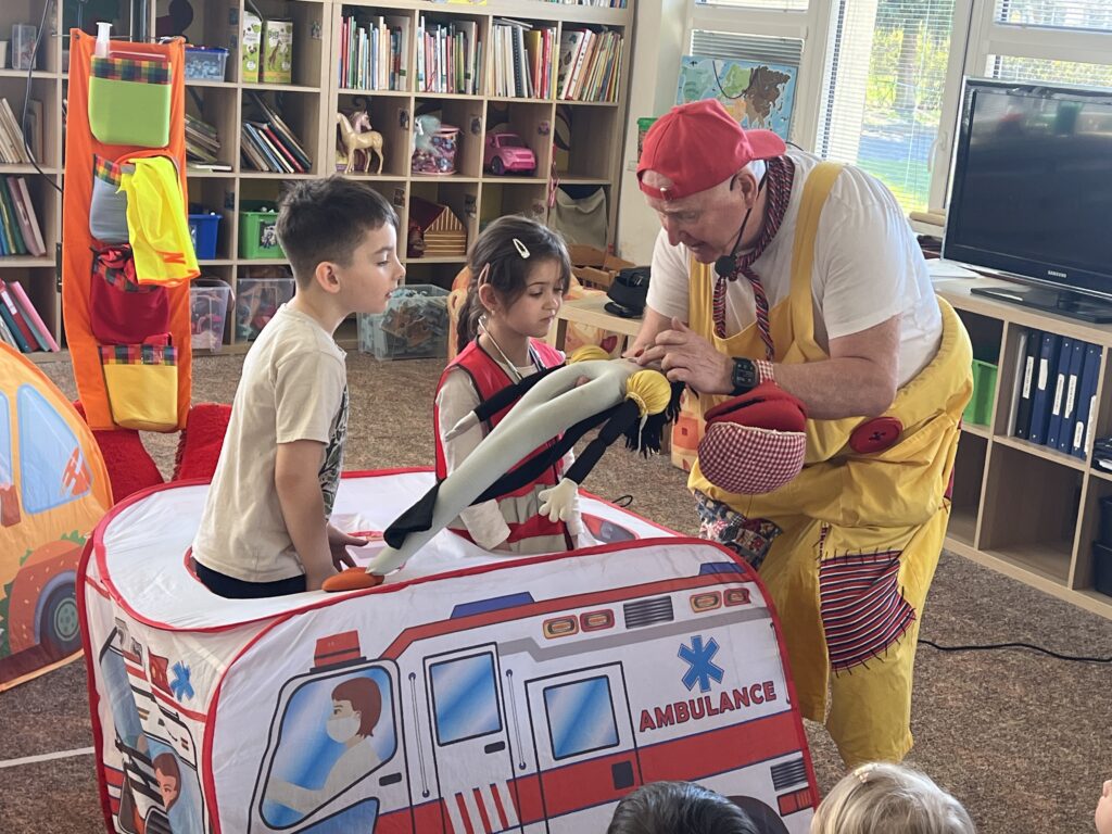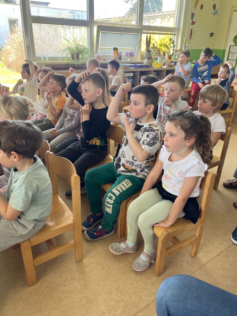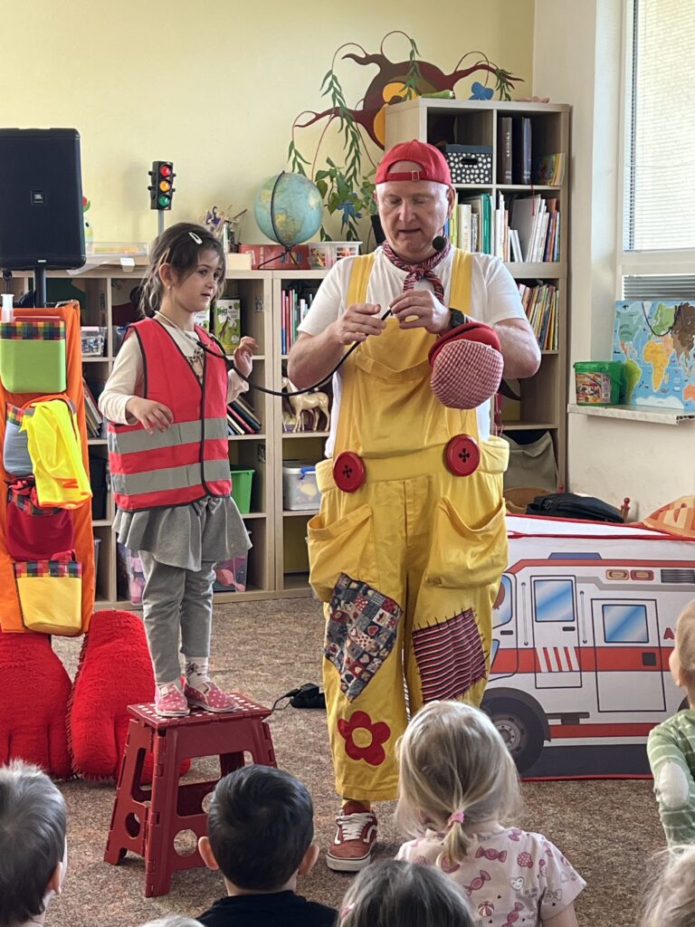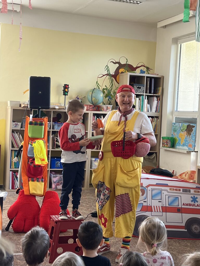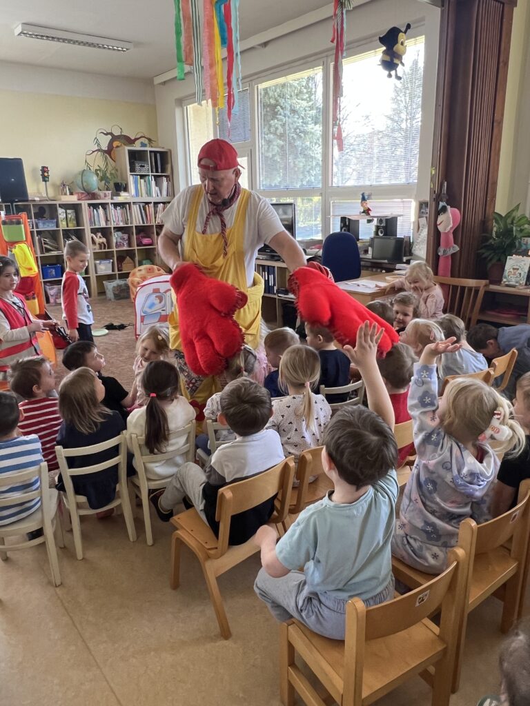 Ve středu 7.dubna zavítal do mateřské školky pan Krejčík s interaktivním programem, ve kterém se děti proměnily v malé kuchaře a záchranáře. Děti se aktivně zapojily do „velkého nákupu“, učily se vybírat ty nejlepší suroviny a společně si vyzkoušely, jak se připravuje zdravý talíř. Při tom si hravě vysvětlily, proč je pro nás zdravá strava důležitá a co našemu tělu dodává sílu. V rámci bloku o malých záchranářích děti dostaly důležité instrukce, jak se zachovat v krizových situacích. Společně si procvičili telefonní čísla na hasiče, policisty i záchranku, aby každý věděl, kam se v případě potřeby obrátit. Během programu si děti zatancovaly a zazpívaly za doprovodu písniček pana Krejčíka. Smíchu a dobré nálady byla plná školka!